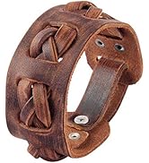 GelConnie Leather Cuff Bracelet Punk Braided Bracelets Rock Leather Wristbands Faux Mens Leather Bracelet Gothic Viking Bangle Adjustable Wrap Bracelet for Women,Men, 9", Leather