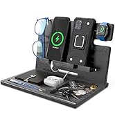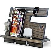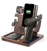 Purchased for my very organized husband who wanted a nice looking bedside organizer for all of his gear. It was quick and easy to assemble after opening. Fits perfectly on night stand and leaves room for a lamp if needed. Very sturdy and beautiful to look at. It supports two phones and watch well. Great gift, would purchase again.