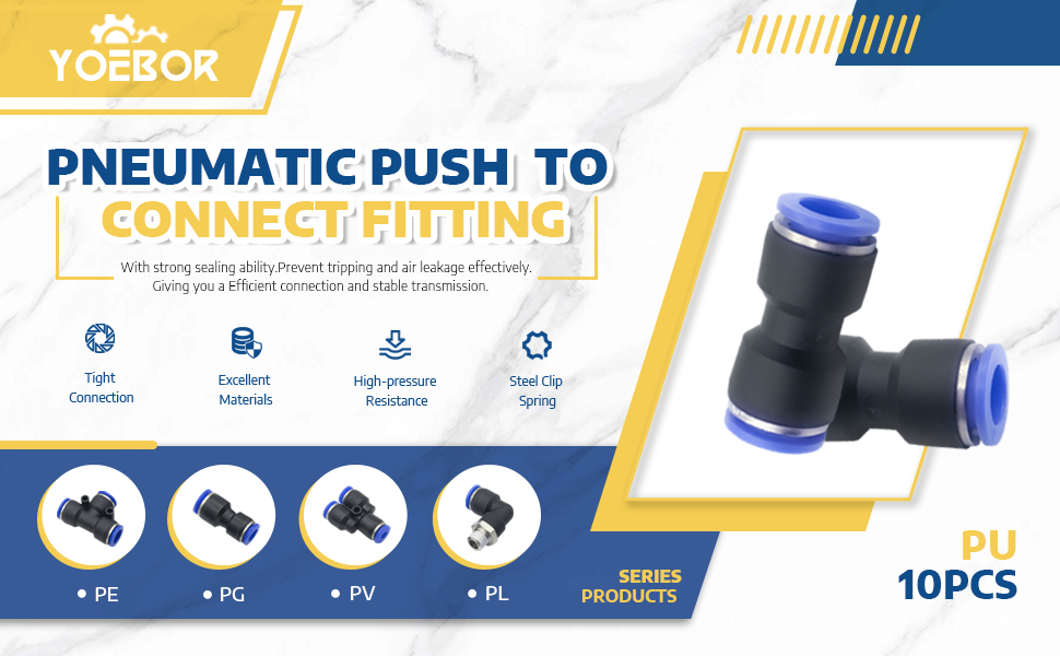 The Metalwork Plastic Push to Connect Straight Union Tube Fitting (8mm OD x 8mm OD) is a high-performance pneumatic connector designed for polyurethane or nylon tubing. Featuring a quick-connect elliptical sleeve, it supports operating pressures up to 150 PSI and is reusable for multiple connection cycles. Compact and lightweight, this pack of 10 fittings ensures reliable, leak-free connections ideal for professional-grade pneumatic systems.