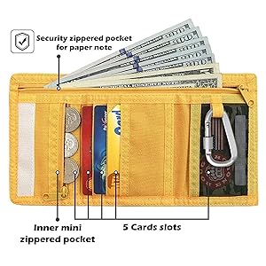 Rough Enough Mens Kids Boys Wallets for Teenagers with Zip Coin Pocket Card Holder with Carabiner Key Chain in Mustard for Sports School Travel