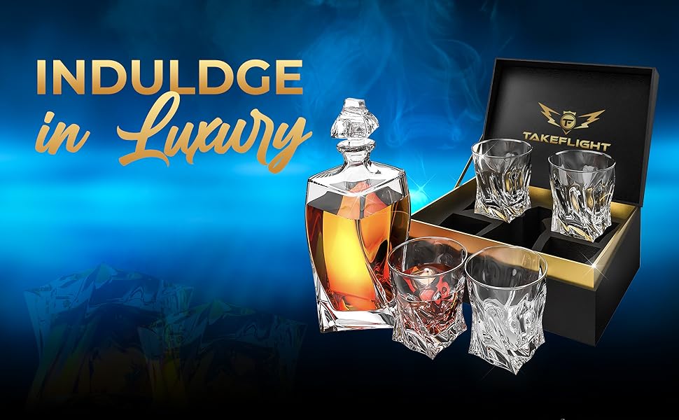 The TF TakeFlight Elegant Crystal Whiskey Decanter Set is designed for the discerning whiskey lover. Featuring lead-free, heavy-duty crystal glasses and an oversized design, this set enhances the flavor and presentation of your favorite spirits. Perfect as a gift for any occasion, it comes elegantly packaged, making it an ideal choice for gentlemen who appreciate quality and style.