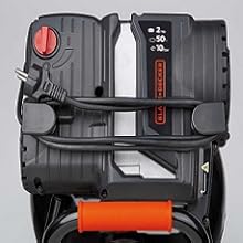 The Black & Decker BD 227/50V NK is a professional-grade air compressor featuring a powerful 2 HP motor, a space-saving 50L vertical tank, and a high air flow rate of 220 L/min. Designed for versatility and portability, it includes large wheels, a convenient handle, and cable reel hooks, making it ideal for efficient, on-the-go use in demanding environments.