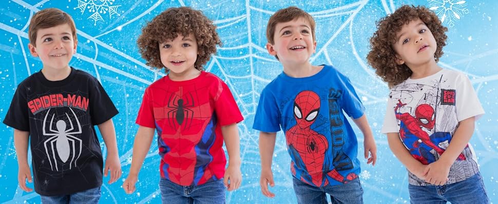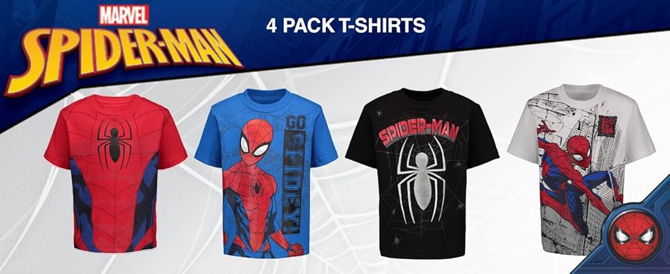 boys Marvel Spider-Man 4 Pack Pullover T-Shirts Toddler to Big Kid shirt