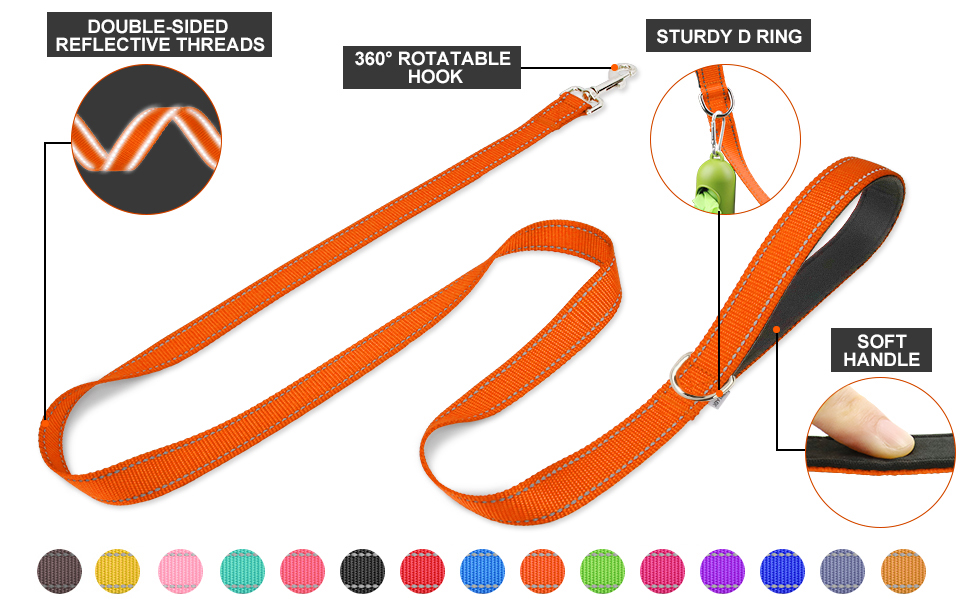 I have a German Sheperd and this leash is purrrfect for her. Long enough to allow for easy walking, the reflectors are good for evening walking, when a bike comes along our walking path, the stitching does reflect and help alert a bike rider we are there. What I really love is the extra metal loop that makes tying her up when we go out to eat or just shortening the leash when needed super easy. I definitely recommend these leashes and am grateful for the good quality and good price.