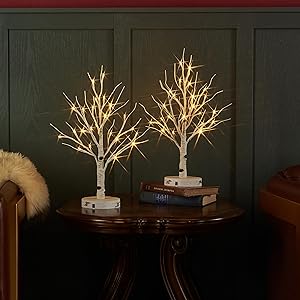 LITBLOOM Lighted Birch Tree with Timer Battery Operated or USB Plug-in 18IN 24 LED, Easter Tree with Lights for Wedding Party Home Decoration