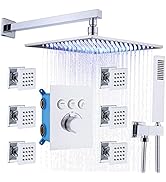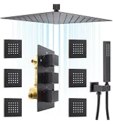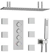The Enga 16-inch Thermostatic Rain Shower System features a ceiling-mounted ultra-thin rain shower head, six high-pressure body spray jets, and a thermostatic anti-scald valve. Designed for simultaneous or individual use of all functions, it offers personalized water control with durable brass construction and a brushed nickel finish. Ideal for millennial professionals seeking a spa-like, safe, and stylish shower upgrade backed by a 5-year warranty.