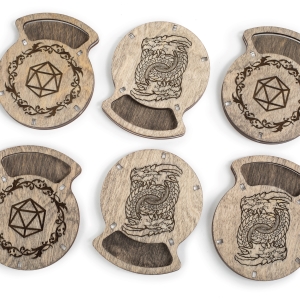 SMONEXWood Coasters Set of 5 - Drink Holder Ideal as DND Accessories for Dungeon Masters and D&D Fans - Gray Dice Coasters