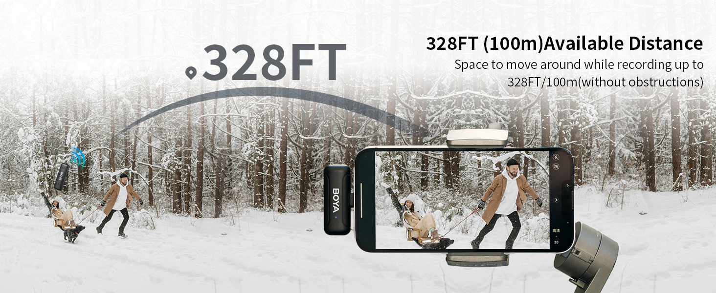 BOYA Wireless Lavalier Microphone for iPhone MFi Certified iPhone Microphone for Video Recording with Noise Cancelling & 100m Transmission 32H Working Time for Youtube Vlog (BY-WM3T-D2)