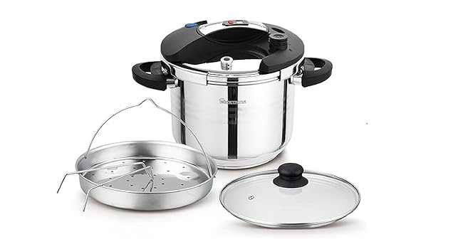 The HomeTronix 8 Litre Pressure Cooker combines rapid cooking technology with energy efficiency, locking in up to 90% more nutrients. Featuring an intuitive LED pressure display, dual safety valves, and a large capacity perfect for family meals, it also includes a steamer basket and extra glass lid for versatile cooking options. Durable stainless steel with double side handles ensures safe handling and even heat distribution on all hob types, including induction.