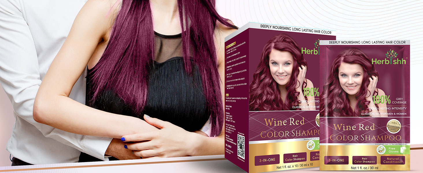 HerbishhHair Color Shampoo For Gray Hair–Natural Hair Dye Shampoo With Argan Hair Mask–Travel Size-Colors Hair In Minutes–Long Lasting Colour–10Pack+1Pack–Ammonia-Free (Wine Red)