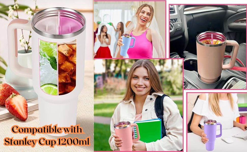The House of Quirk 2-in-1 Drink Separator is a reusable, food-grade silicone liner designed exclusively for the Stanley 1200ml cup. Featuring two 15oz color-coded compartments, it allows you to carry and enjoy two different beverages simultaneously without mixing flavors. Durable, BPA-free, and dishwasher safe, this innovative accessory is perfect for professionals seeking convenience and style in their daily hydration routine.