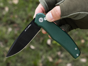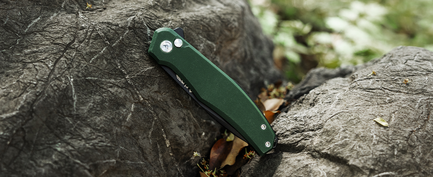 G10ハンドルがしっくり来るフリパーオープンもベアリング入りで軽い力でオープン出来て片手でも扱いが便利ですねロックがプッシュロックですが使いながら押すか試して見ましたが握り方によっては押してしまうかもでもある程度のボタンの渋みがあるので慣れれば押さない様に出来るかも。ロックはちゃんと掛かりますプッシュロックを押さない限りロックが外れる事も無いですね。出来ればプッシュロックをロックするスイッチがあれば完璧かも。D2鋼で黒ブレード良いですね箱出しの刃付けでも問題無く良く切れます。