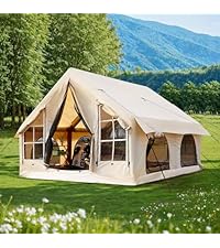 I'm 74, and semiretired, so I want to get back into camping. After months of looking at all the options there are for tents, I decided I wanted something substantial - more of a glamping tent or basecamp. When I saw inflatable tents I did my research and decided maybe they would be a good option. But there are so many choices, and most of the reviews are mixed or just not very helpful. Finally based on materials and ease of setup I bought the 10 x 10 KNUO inflatable tent. I was pretty excited when it arrived, until I lifted it. This tent is HEAVY and a bit unwieldy - about 66 lbs, prompting me to buy a cart to haul it in. Unboxing it however was a treat. It does in a big bag, and has a smaller very strong bag inside holding the tent, pump and stakes. It does not come with anything more than the sketchiest of instructions (inside the bag), but there isn't too much to worry about. I spread the tent out in my backyard, attached the hose to the pump and screwed it into the inflation port, which looked solidly built into the tent. It took about 7 minutes to pump up, lifting and spreading it out until it reached the 7 psi recommended on the pump gauge. I'm a bit lazy and may get a portable inflator but hey, I can use the exercise. With a bit of help it popped up nicely and is absolutely what I wanted. It is gorgeous. The material is the thickest I have ever seen on a tent. I believe the 1600 Oxford cloth claim. it is very nice, feels strong, and the tub floor is great. After a day it was still perfectly inflated, and I didn't want to leave it up. It has a ring set inside so you can string a line up across the length or the tent, or attach to one of the 3 rings. The doors and screens have easy to use holdbacks when you want them open, and the zippers feel very good quality at first glance. I am really excited to take this out boon docking or national park camping. I will report back later with an update on waterproofing and actual use. I seriously love this tent so far - and feel it is a great deal.