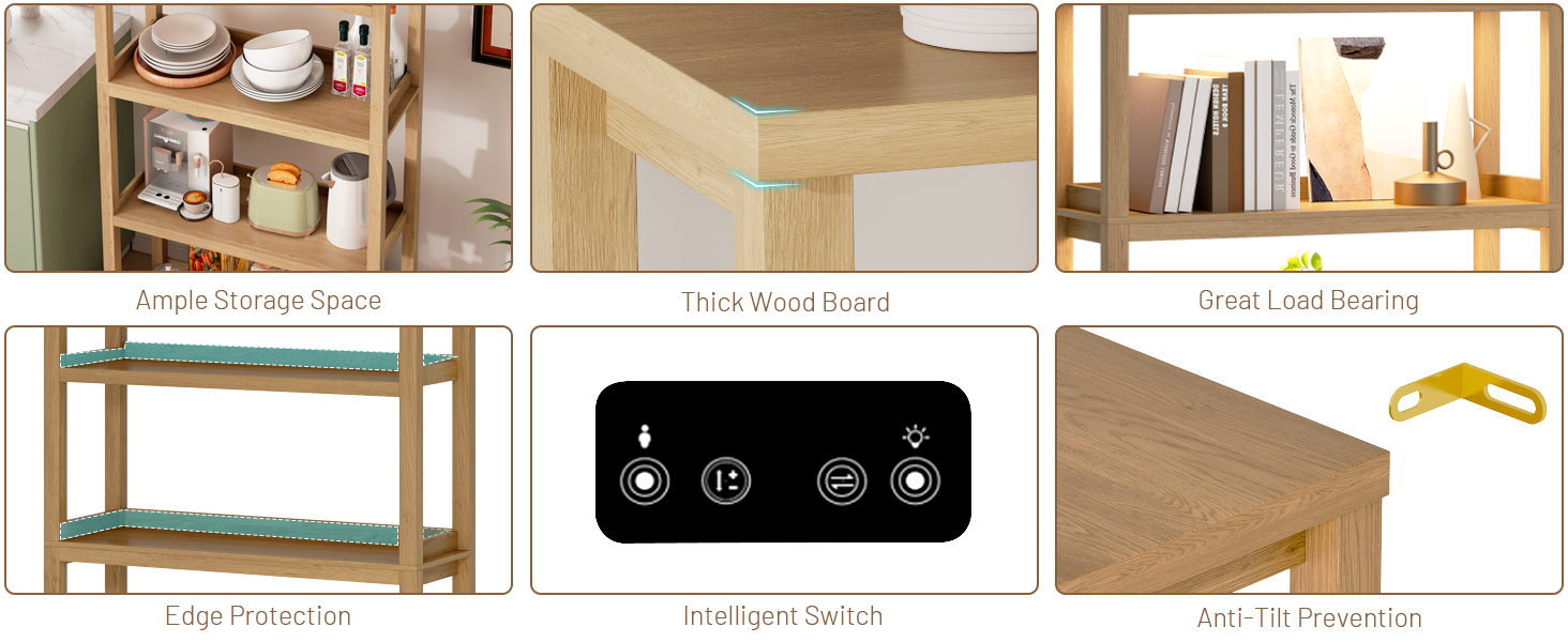 Vlsrka Wooden Bookshelf With Lights 5 Tier Bookshelf With Storage | Desertcart New Zealand